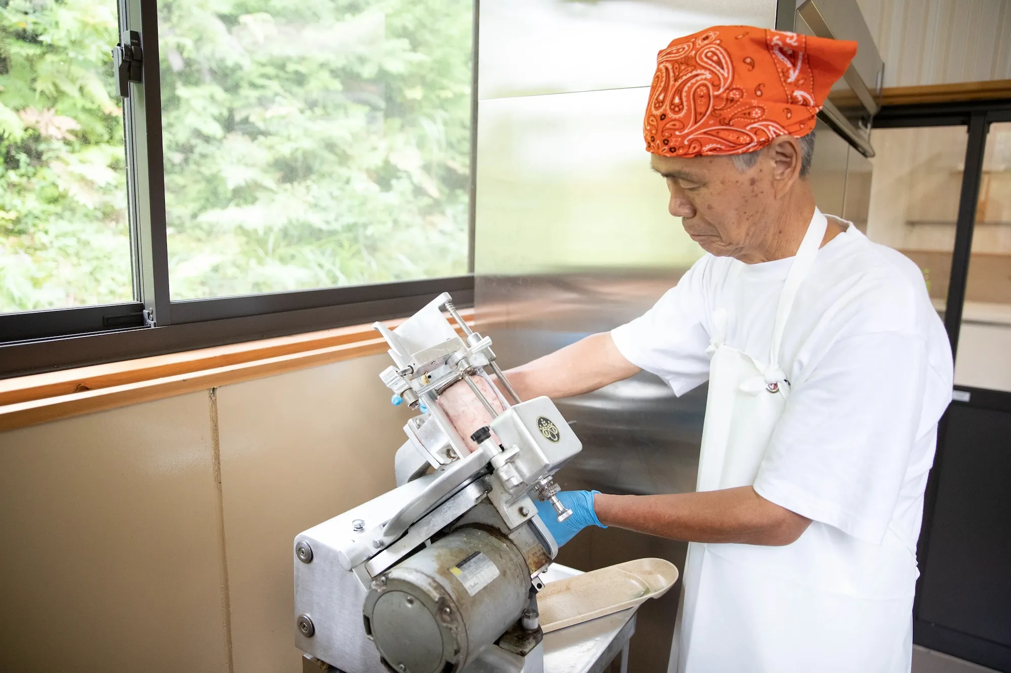 燻製を行う前は必ず天日干しを行い、「旨味成分」を醸成(じょうせい)し、90℃以上の高温で数時間以上をかけて燻蒸(くんじょう)する事で美味しい鹿肉のジャーキーが完成します。