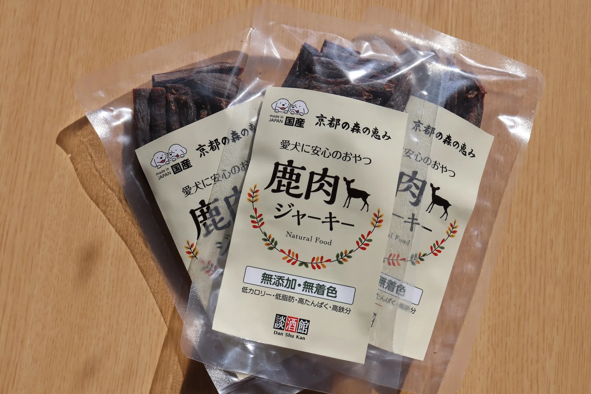 ウチの子は、袋からジャーキーを取りだしたあとの香りが大好きで、袋を破る音を聞くだけで反応をして、嬉しそうに走り寄ってくれます。談酒館さんにこの話をした所、鹿肉ジャーキーは晴れの日に天日干しにして旨味成分を出したあとに、地元で採れた桜チップでじっくり燻して作っている事を教わり、ヒトの私が聞いても美味しそうに感じてしまいました。(笑)値段もお手頃で、談酒館さんを知ることが出来て本当によかったです!